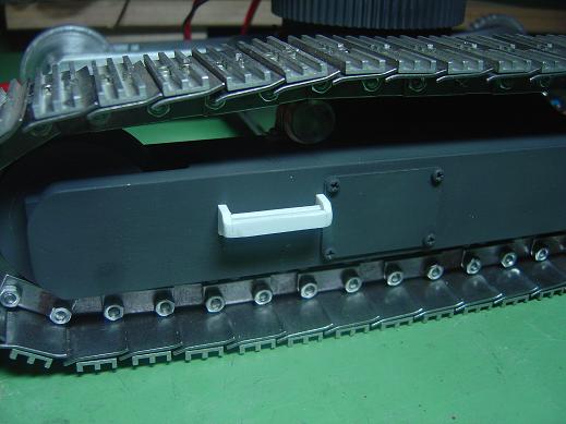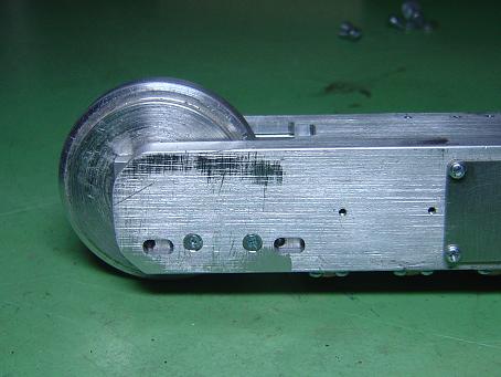 Am Laufwerksträger wurden weiter Veränderungen vorgenommen. Als erstes wurden die 4 Inbusschrauben die den Kettenspanner im Laufwerksträger halten durch Senkschauben ersetzt und das ganze verspachtelt. | ||||||||||||||||||||||||||||||||||||||||||||||||||||||||||||||||||||||||||||||||||||||||||